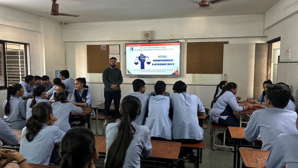 ગજેરા વિદ્યાભવન, ઉત્રાણ ખાતે ગ્રાહક અધિકાર દિન નિમિત્તે આયોજિત સમૂહ ચર્ચા ખૂબ જ ઉપયોગી, માહિતીસભર અને વિદ્યાર્થીઓને વિચારવા પ્રેરિત કરતી રહી. આ ચર્ચાનો મુખ્ય હેતુ વિદ્યાર્થીઓને જાગૃત ગ્રાહક બનાવવાનો અને તેમના અધિકાર તથા ફરજો વિશે સ્પષ્ટ સમજ વિકસાવવાનો હતો. સમૂહ ચર્ચા માટે ફોટામાં દર્શાવાયેલા મુખ્ય મુદ્દાઓ જેમ કે મોંઘવારી, ઓનલાઈન ખરીદીની સુરક્ષા, ફરિયાદનો અધિકાર, ગ્રાહકના અધિકારો, ખોટી જાહેરાતોથી સાવધાની અને ગ્રાહક તરીકેની ફરજોનો સમાવેશ કરવામાં આવ્યો હતો.