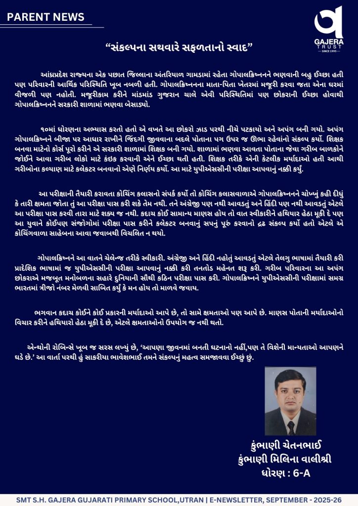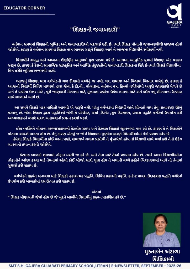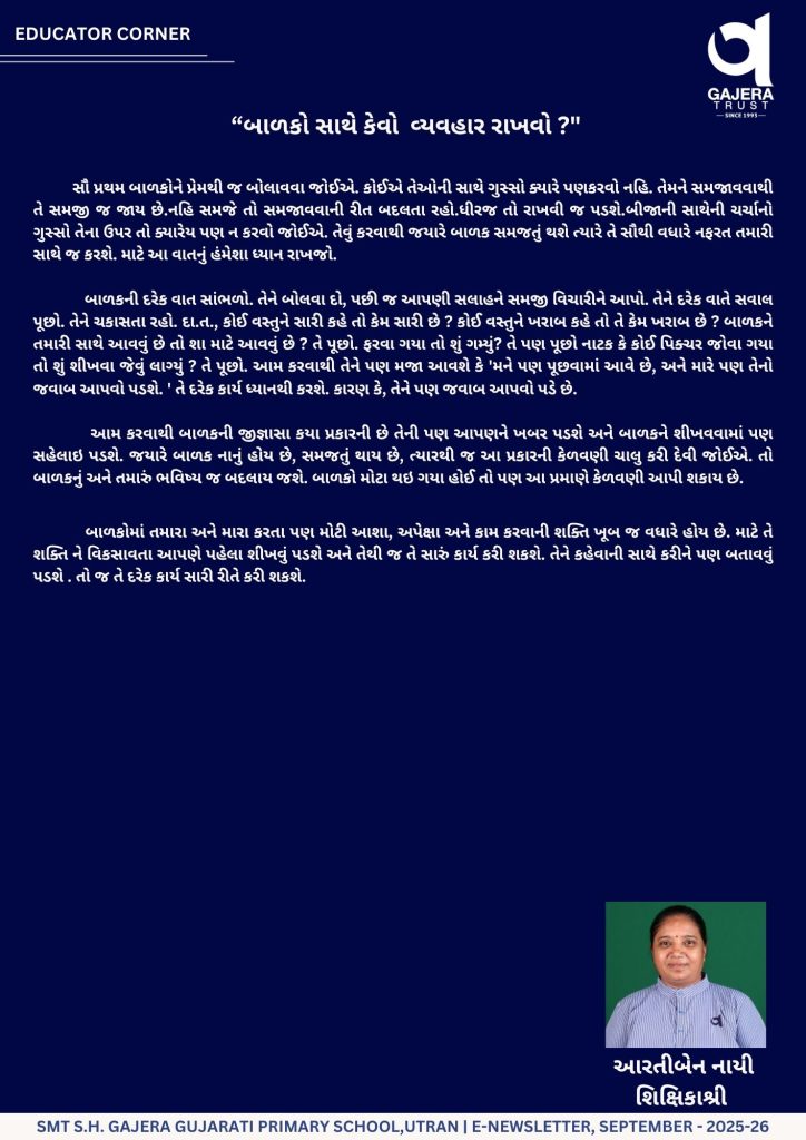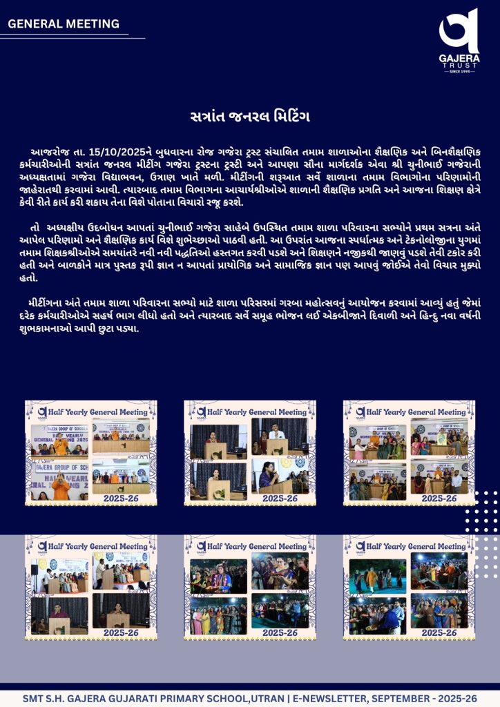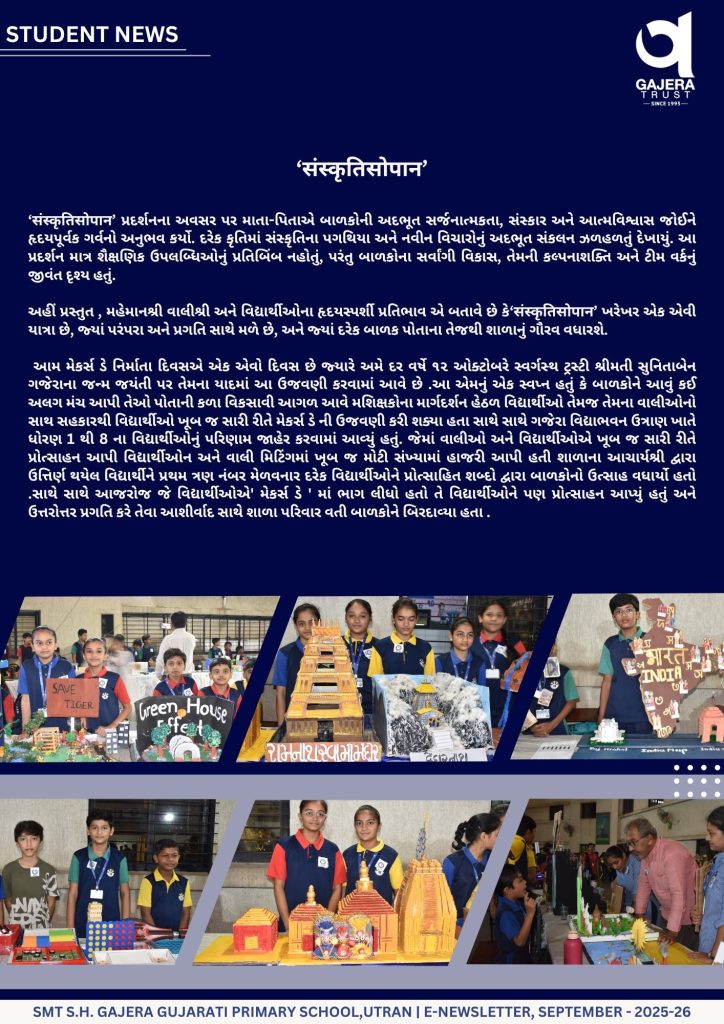 MONTHLY E-NEWS LETTER :- September & October Leave a Comment / Primary / By Gajera Vidyabhavan Utran - Gujarati Post Views: 119